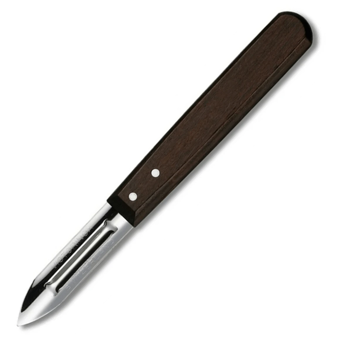 Victorinox Schäler für beide Hände geeignet für Kartoffeln, Obst oder Gemüse, mit einer hochwertigen Edelstahlklinge und einem Griff aus lackiertem dunklem Rosenholz. Nicht spülmaschinenfest.