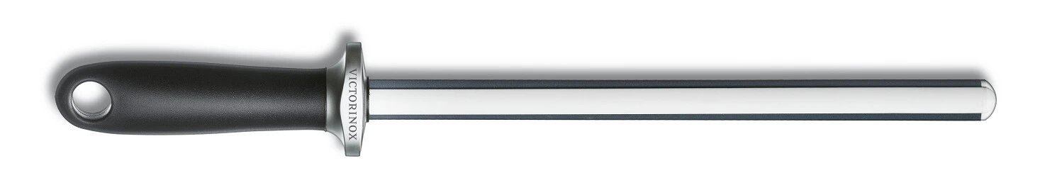 Victorinox Keramikschleifer mit ovalem Schleifmittel und Länge 26 cm. Mit schwarzem Kunststoffgriff und Aufhängeloch erhältlich.